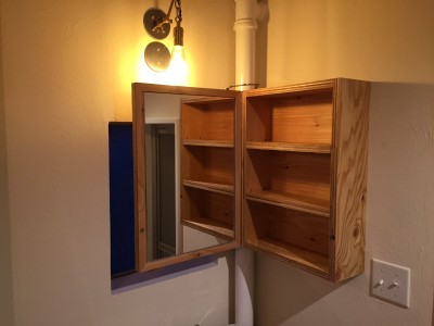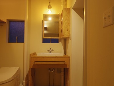 特に問題だった洗面所やトイレ・お風呂の設備機器。配管の関係などで苦労しましたが設備機器の一新をしています。また洗面所には「窓」があったた為に「鏡」が設置できないという問題がありましたが、鏡付の収納キャビネットで対応しています。