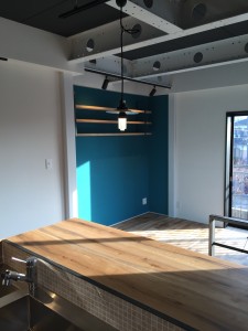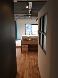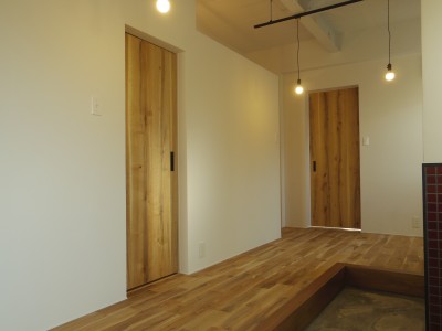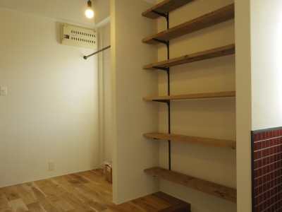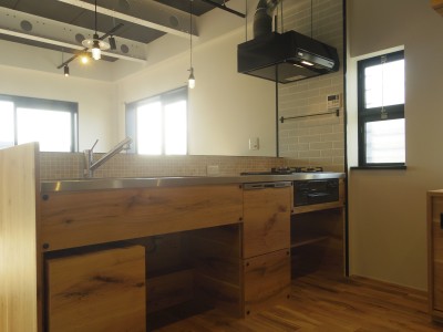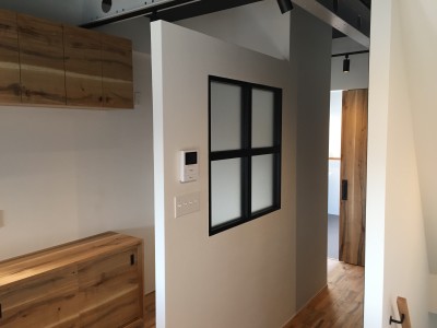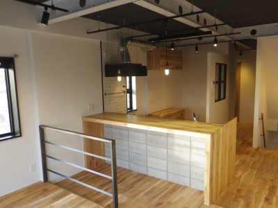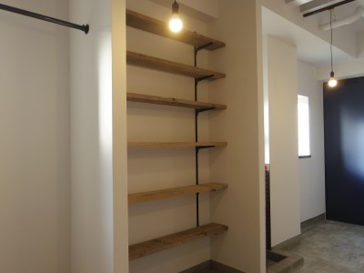 大阪府茨木市にお住いのF様は、ご夫婦とお子様1人の3人家族です。鉄骨造の3階建て戸建て住宅をご購入されお問合せを頂きました。アイアンや足場板といった素材を使ってショップの様な雰囲気にしたい。というご相談を頂き、レトロな雰囲気でショップの様なリノベーションがスタートしました。