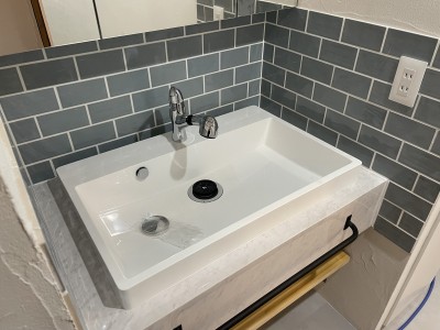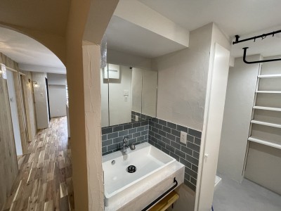 • 洗面所のカビ対策として調湿効果のある珪藻土で壁を仕上げて対策