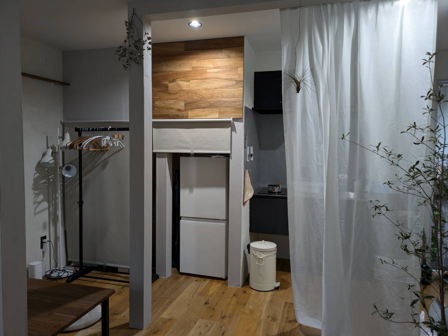- 劣化した壁や天井を撤去し、2部屋に仕切られていた1階店舗部分を1部屋に