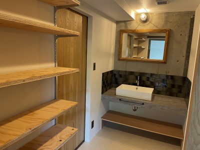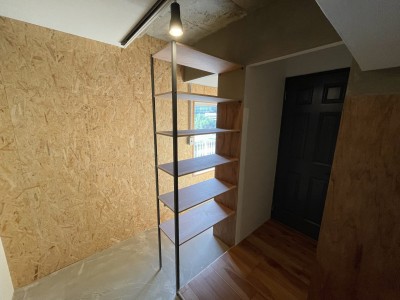 壁にはOSB合板を使い、アウトドア感を出しています。